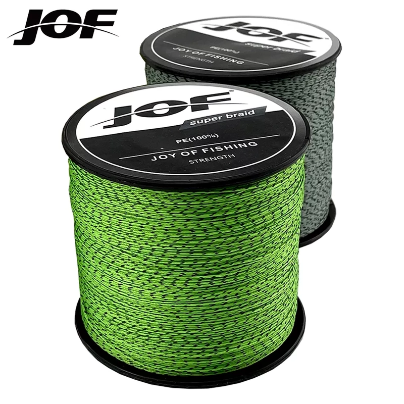 Cuerda trenzada de pesca JOF Super Braid, elaborada con tecnología de tejido ajustado que ofrece una resistencia superior y mínima elongación. Perfecta para pescadores que buscan durabilidad y control en lances prolongados.